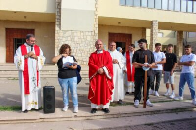 Nell’omelia, il Vescovo ha sottolineato che la croce non è la sconfitta di Gesù ma il luogo da cui accoglie tutta la nostra vita, i nostri fallimenti, le nostre piccolezze, le cose che ci fanno male per poterle, insieme a noi, trasformarle in una vita piena e bella a cui siamo chiamati. Per questo sono stati invitati a lasciare i propri pesi, simboleggiati dalle pietre, in un cestino e, casomai, riprenderle dopo la S. Messa.